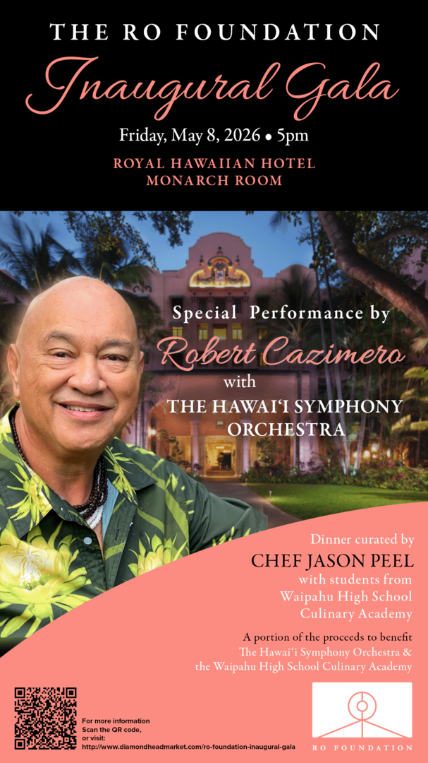 The evening will feature a special performance by legendary Hawaiian icon Robert Cazimero accompanied by the Hawaii Symphony Orchestra—a remarkable collaboration that promises to be both inspiring and unforgettable.